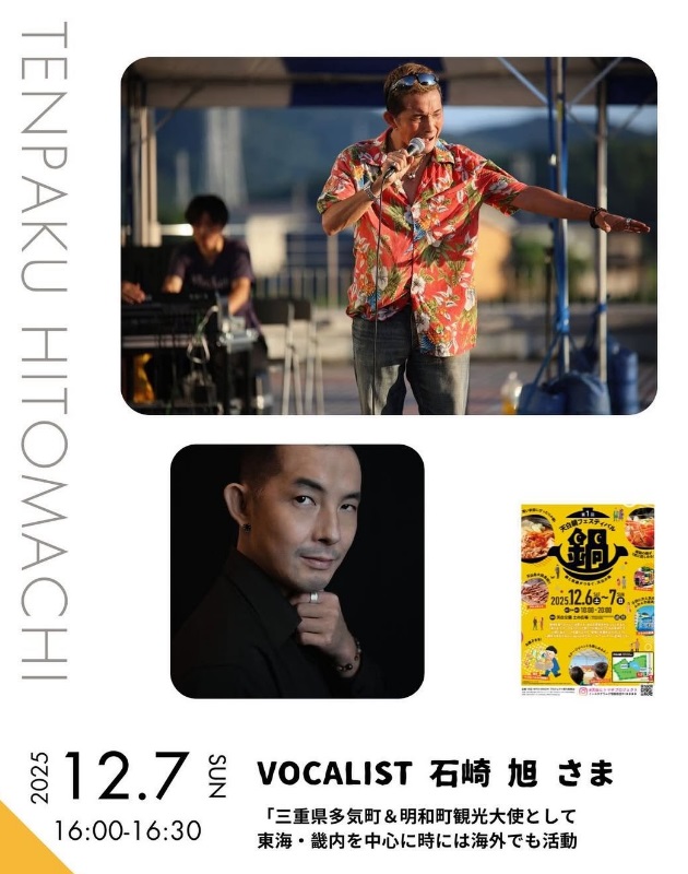 主に東海・畿内を中心にこれまで70を超える自治体でのイベントに出演、COVID19禍以前はニューヨークでもコンサート開催。2024年には香港でも歌唱出演。バラードや洋楽ナンバーを主に歌唱しています。2024年1月新たに多気町観光大使にも委嘱頂きました。三重県薬物乱用指導員を務め更生保護活動にもご協力させていただいております。
