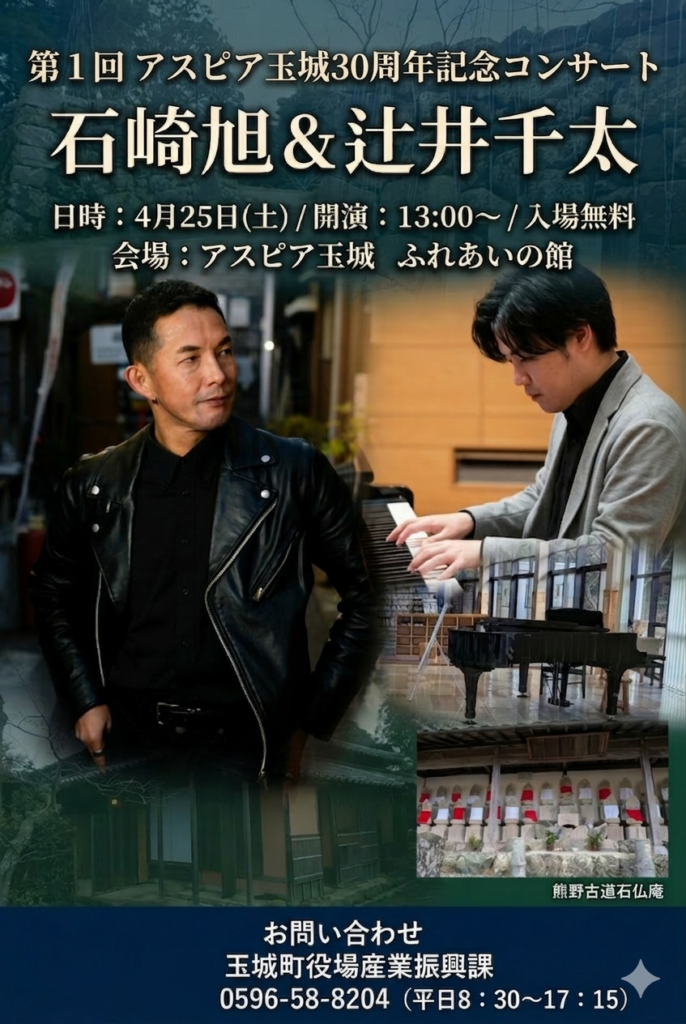 4月25日(土) 13:00~ 玉城町第1回アスピア30周年記念コンサート(w.辻井千太(Pf)